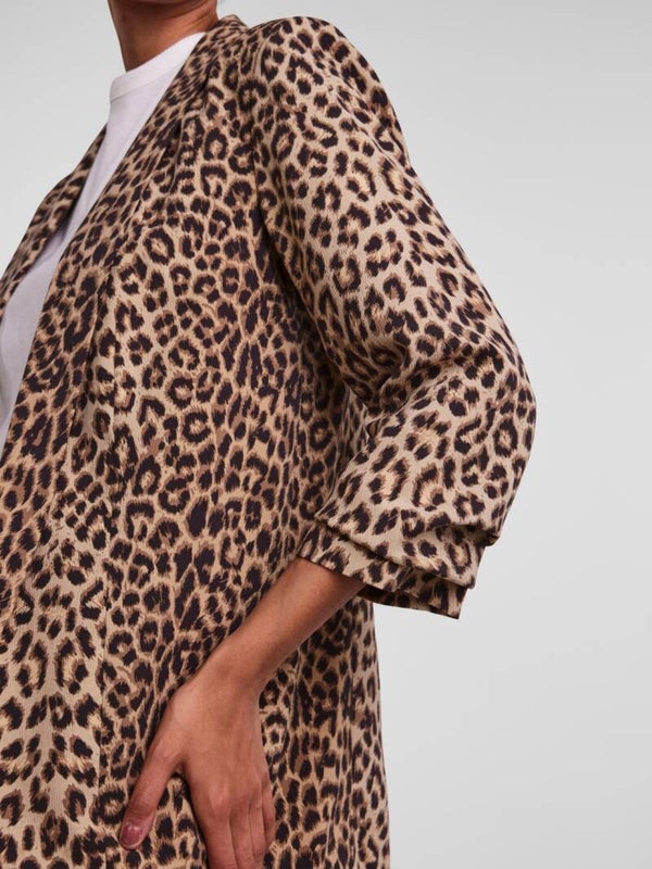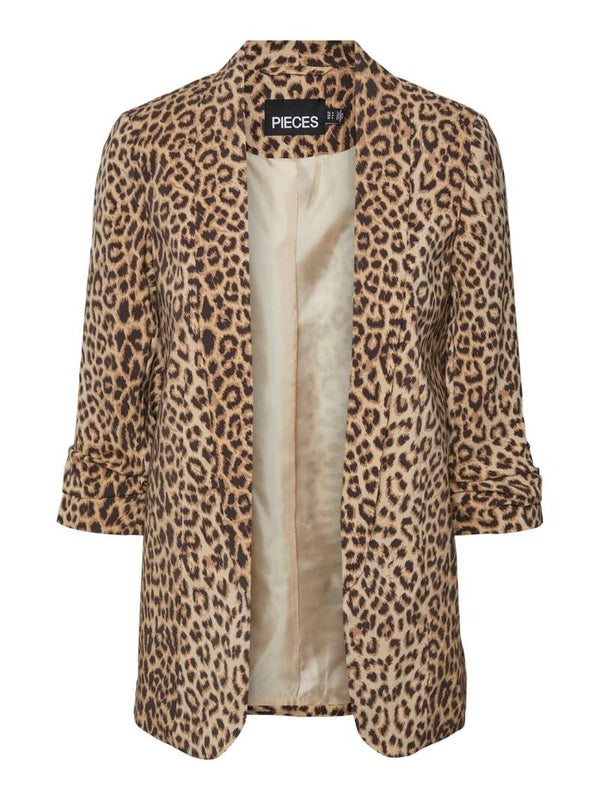 Blazer met leopardprint van het merk Pieces. De blazer heeft omhooggezette mouwen en bevat geen sluiting.