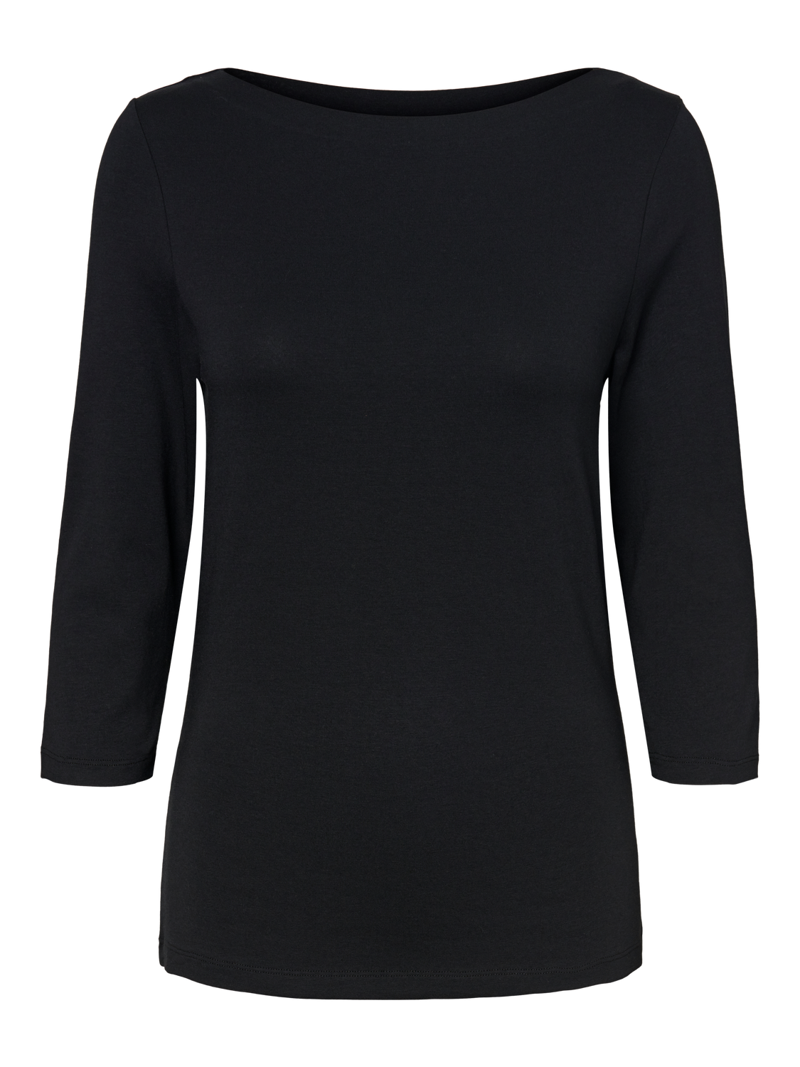 Basic t-shirt met boothals van het merk Vero Moda. Het t-shirt heeft 3/4 mouwen en sluit mooi aan. 48% Katoen, 48% Modal & 4% Elastane.