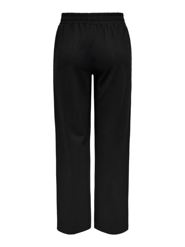 Zwarte sportieve pantalon van het merk Only. Wijd model met elastieken band. De broek heeft steekzakken. 63% Viscose, 32% Nylon & 5% Elastane.