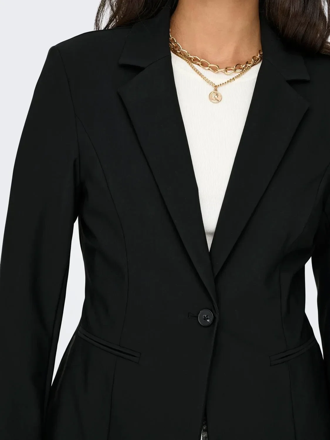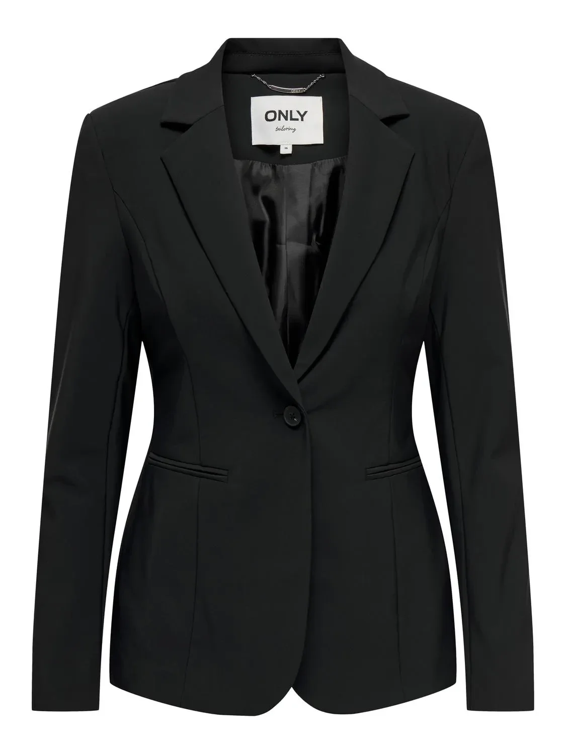 Zwarte blazer in fijne travel kwaliteit van het merk Only. Getailleerd model.