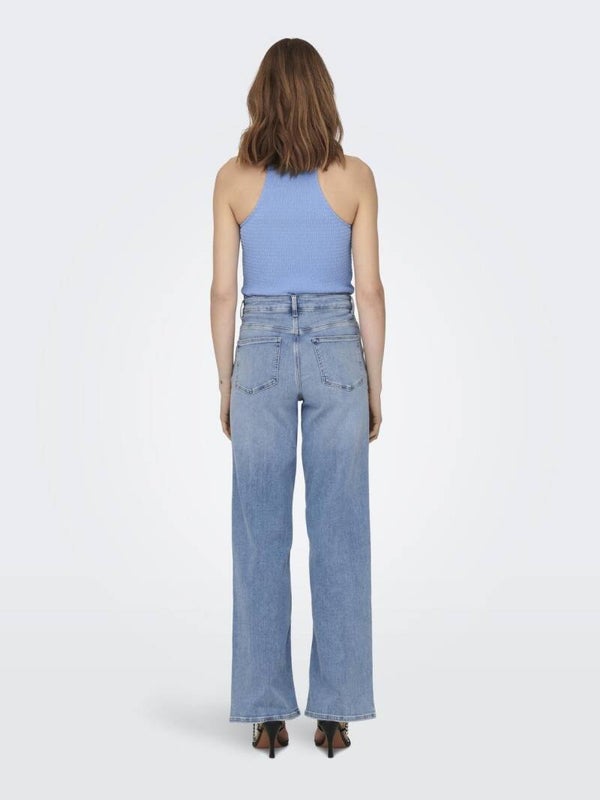 Wide jeans van het merk Only. De jeans heeft een hoge taille en fijne stretch denim. 92% Katoen, 6% Elastomultiester & 2% Elastane.