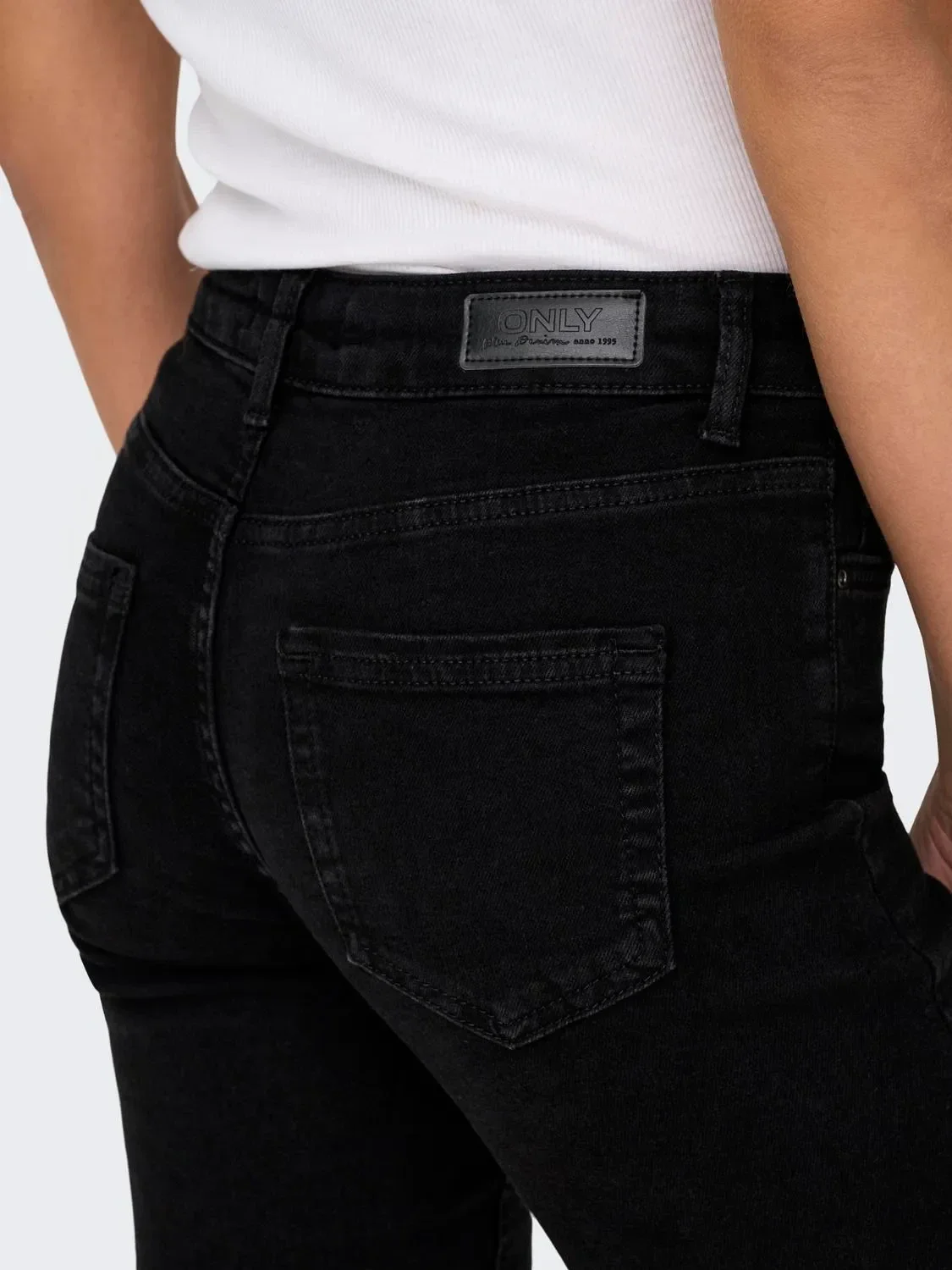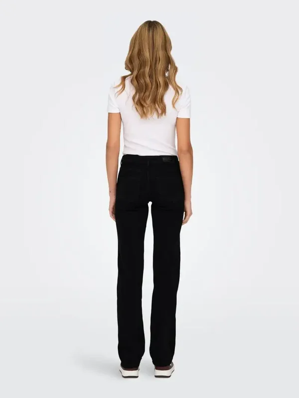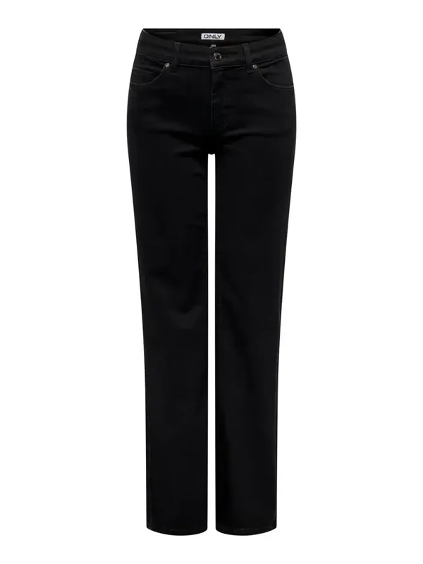Zwarte mid waist straight jeans van het merk Only. Only kleur: REA2343. 92% Katoen, 6% Elastomultiester, 2% Elastane.