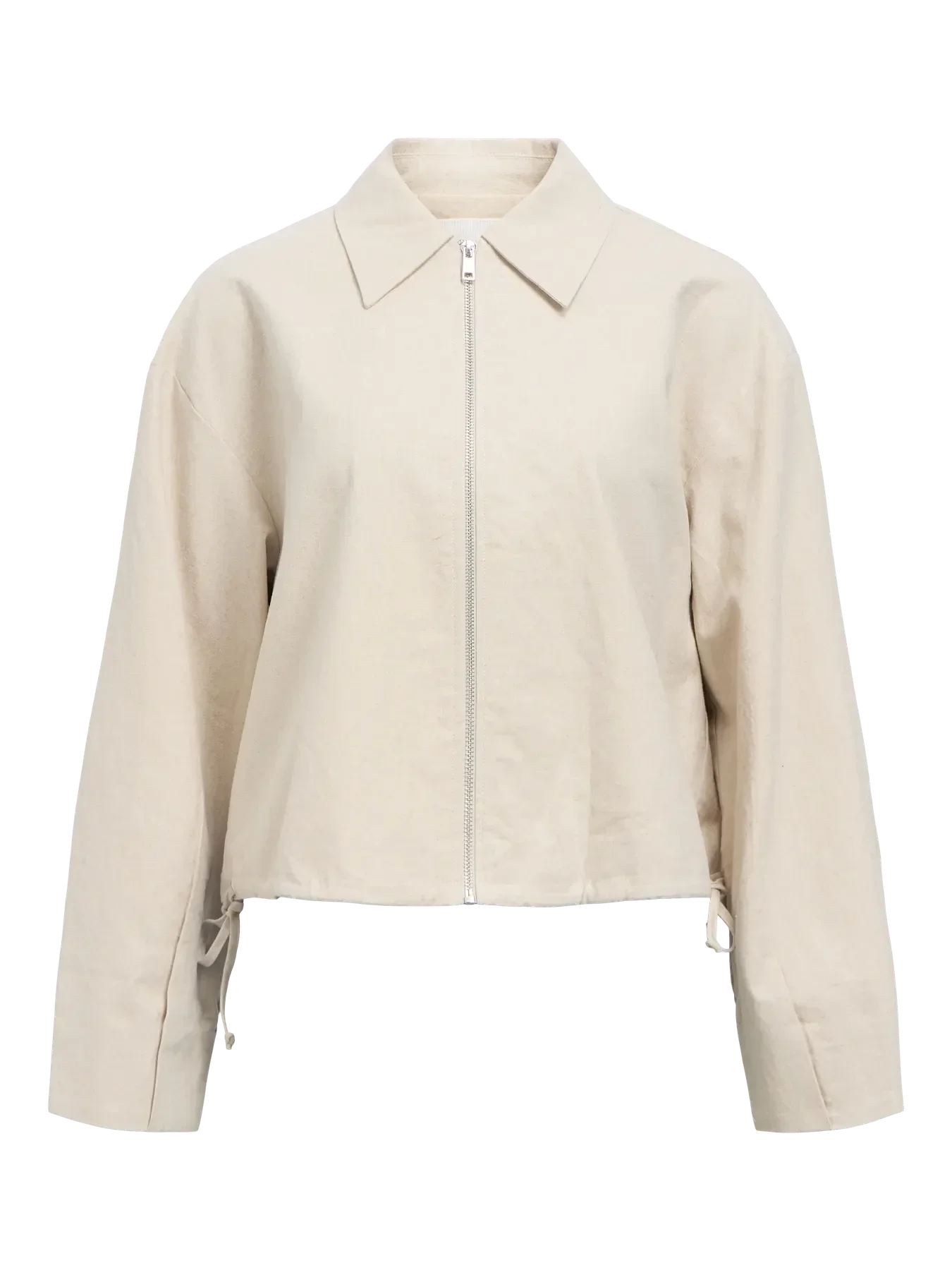 Bomber jasje van het merk Object. Ideaal voor binnen of als zomerjasje voor buiten. Het bomberjasje heeft een kraagje en ritssluiting. 50% Cotton - Organic, 50% Linen