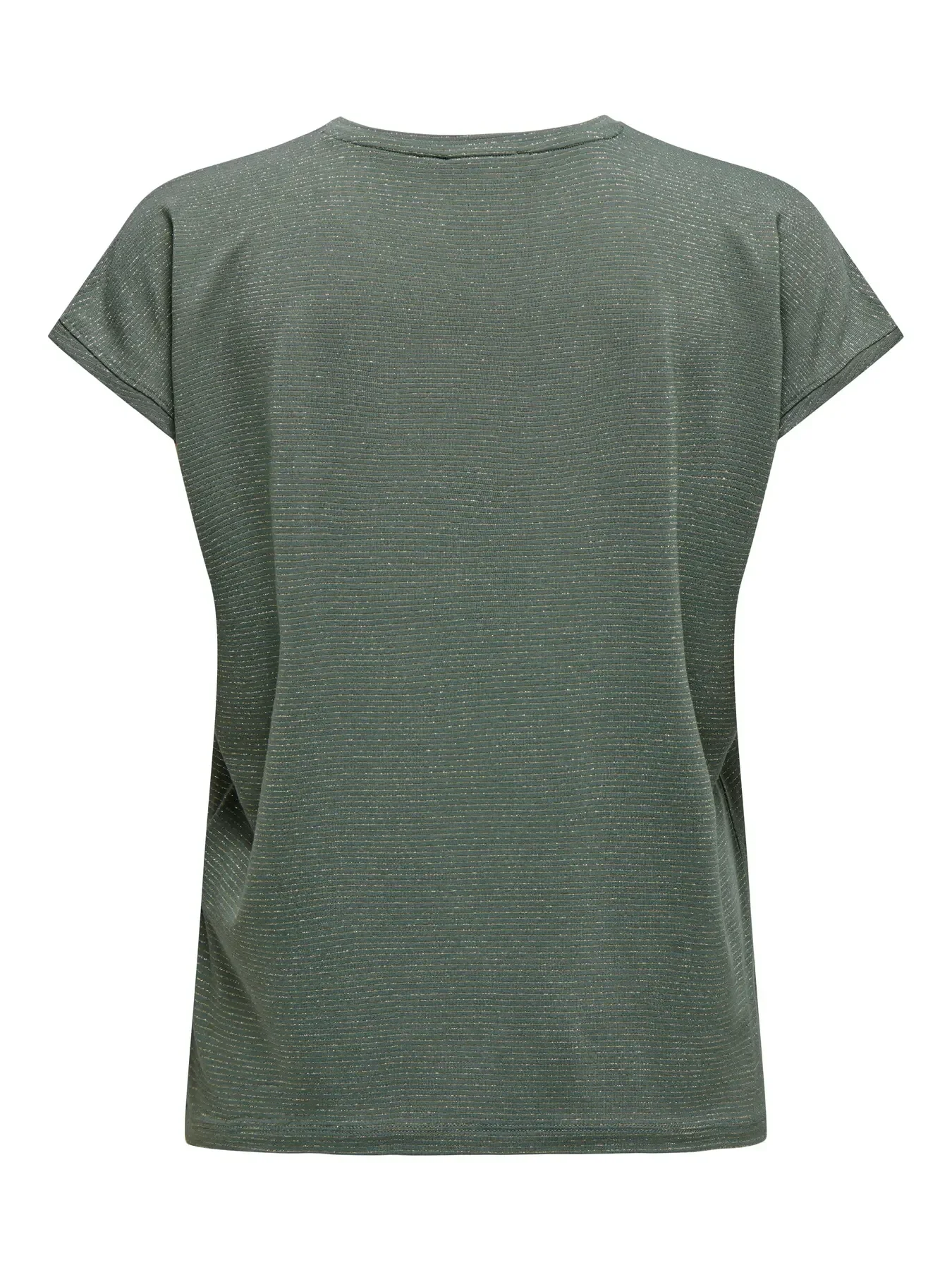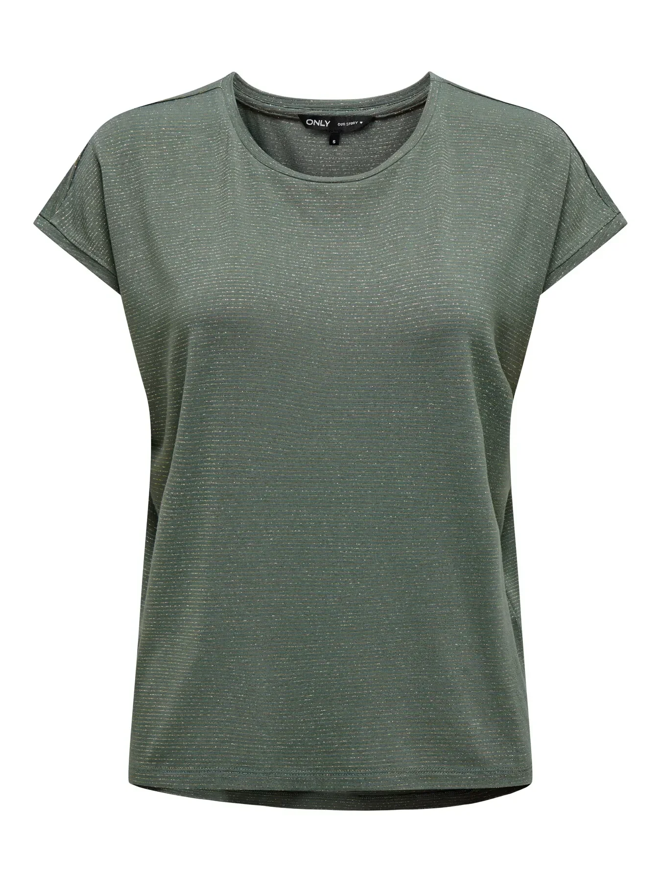 Fijne kwaliteit top van het merk Only. De top heeft een ronde hals en goudkleur lurex detail in de stof. 86% Viscose LENZING™ECOVERO™, 7% Elastane & 7% Metallic Fibres.