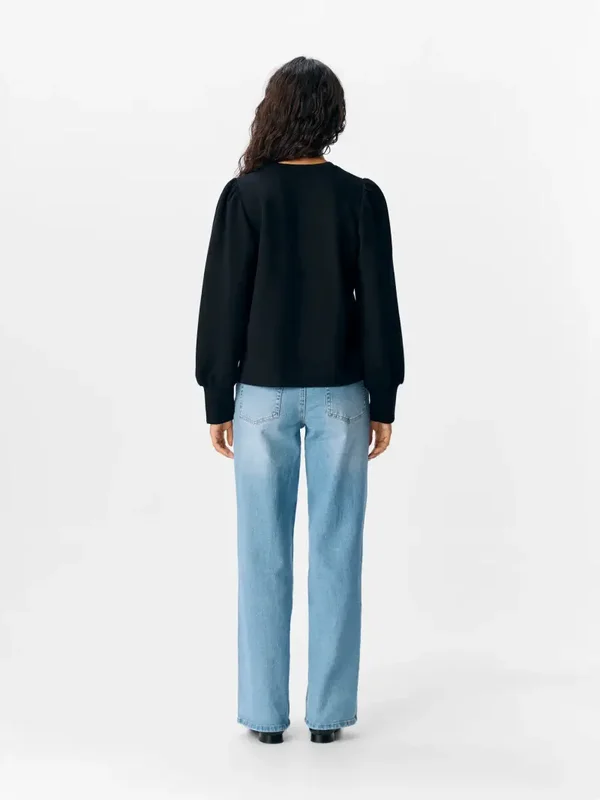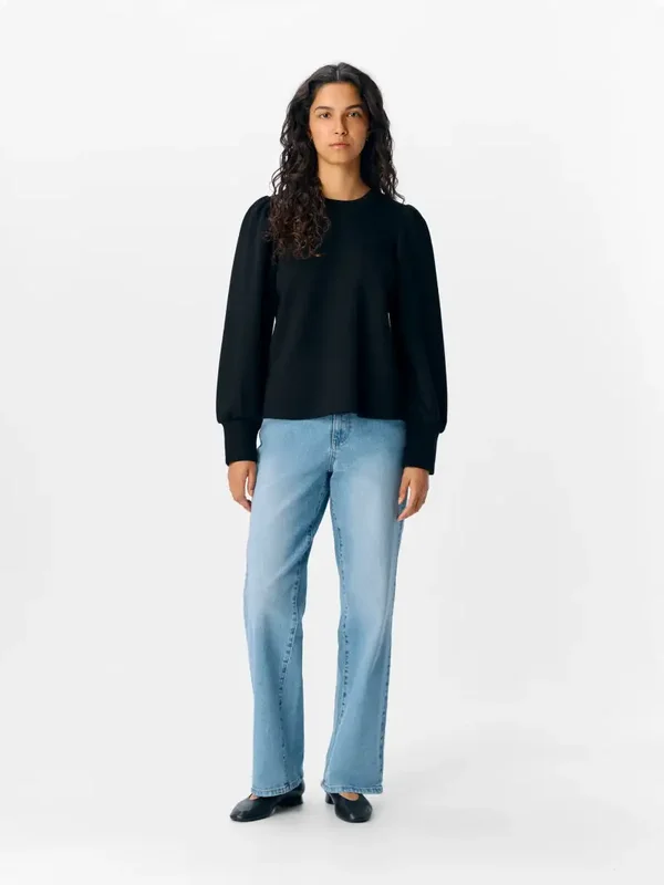 Sweater met pofmouwen van het merk Object. De sweater heeft een ronde hals en lange mouwen. Fijne zachte kwaliteit. 65% Gerecycled Polyester, 30% Viscose LENZING™ECOVERO™ & 5% Elastane.