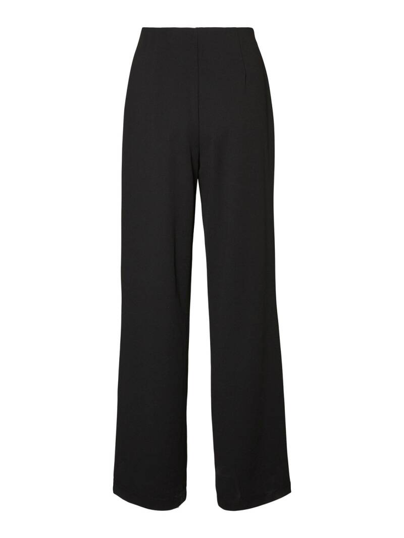 High waist pantalon van het merk Vero Moda. De pantalon heeft wijde broekspijpen en een elastieken band. 95% Polyester & 5% Elastane.