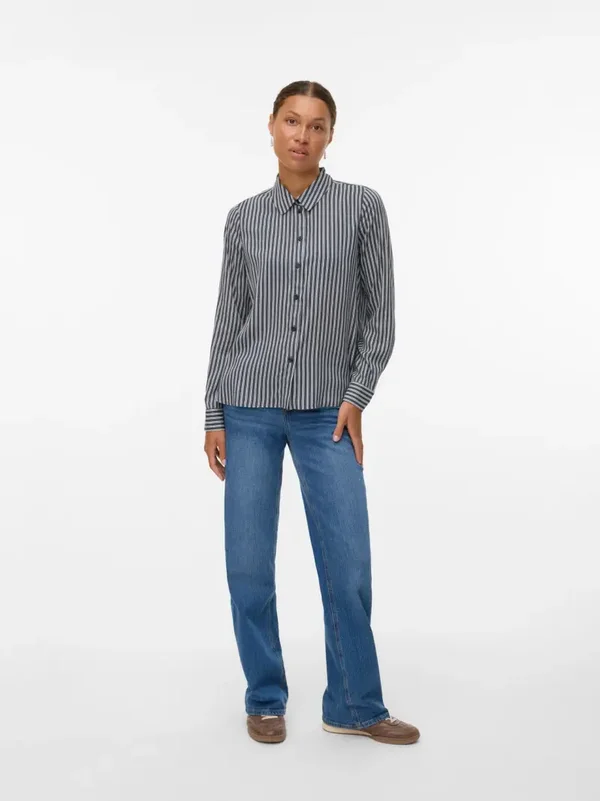 Gestreepte blouse met lange mouwen van het merk Vero Moda. De blouse heeft een kraagje en knoopsluiting. Gemaakt van fijn luchtige viscose kwaliteit. Vero Moda kleur: India Ink. 100% Viscose.