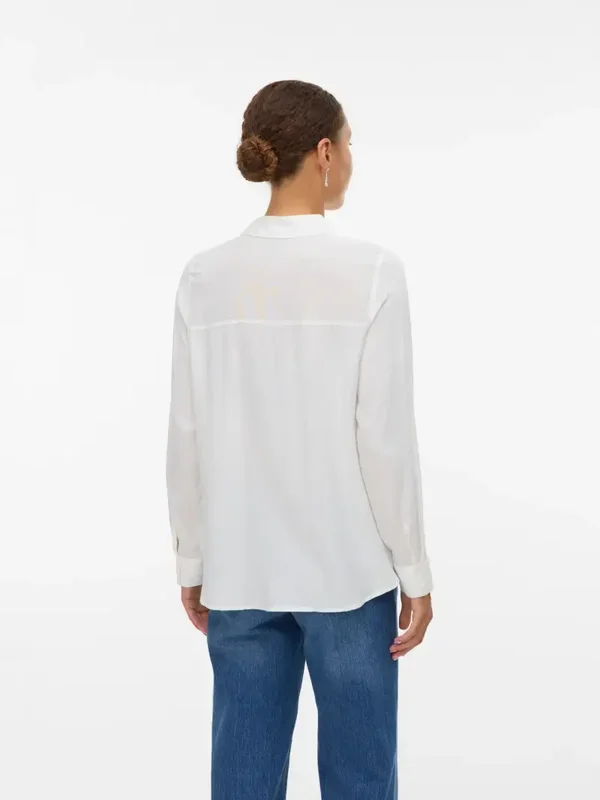 Basic blouse met lange mouwen van het merk Vero Moda. De blouse heeft een kraagje en knoopsluiting. Gemaakt van fijn luchtige viscose kwaliteit. 100% Viscose.