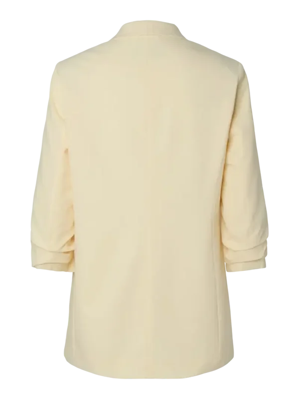Lichtgele met 3/4 mouwen van het merk Pieces. De blazer heeft een revers en valt recht. Zonder sluiting. Pieces kleur: French Vanilla.