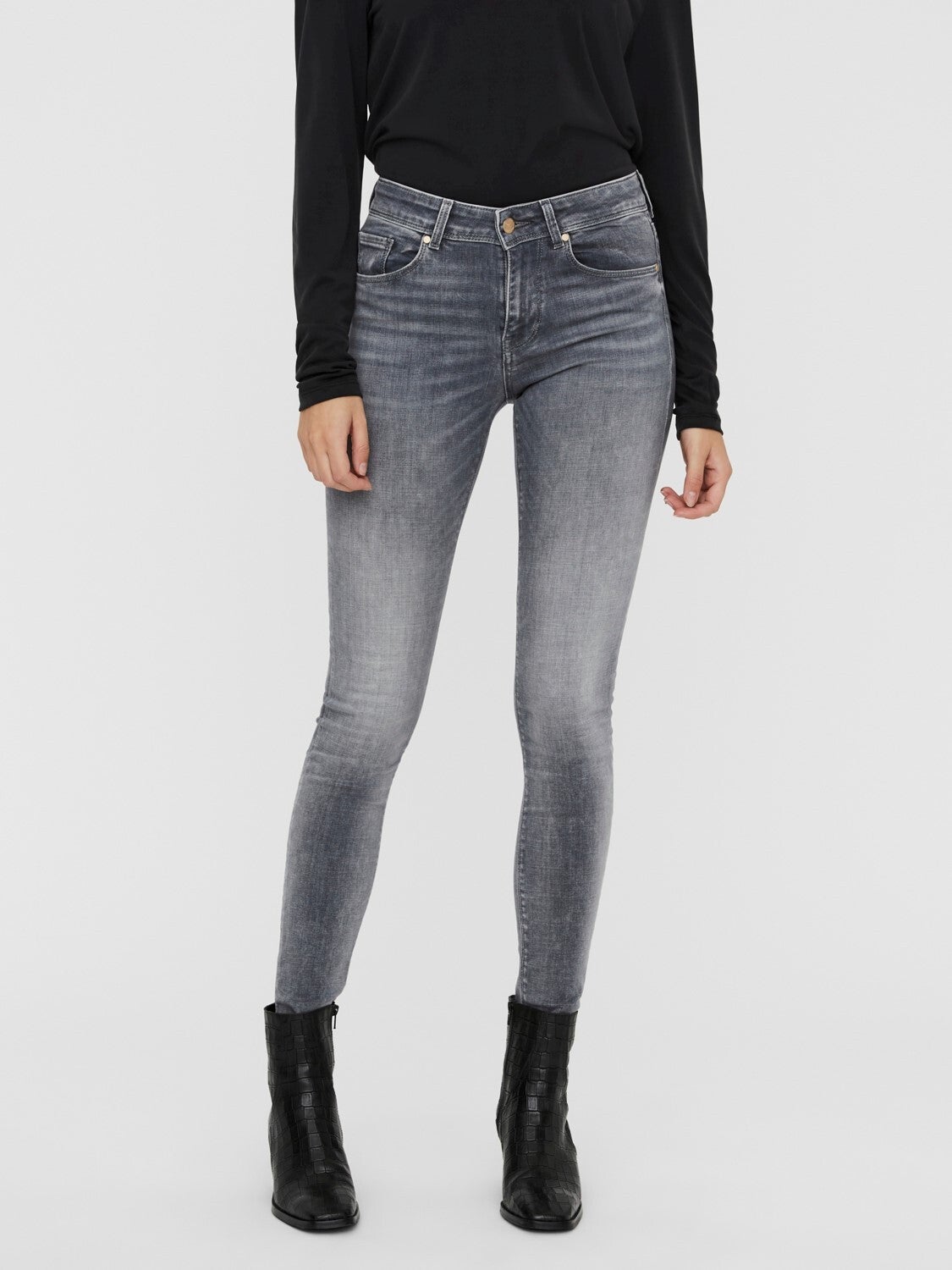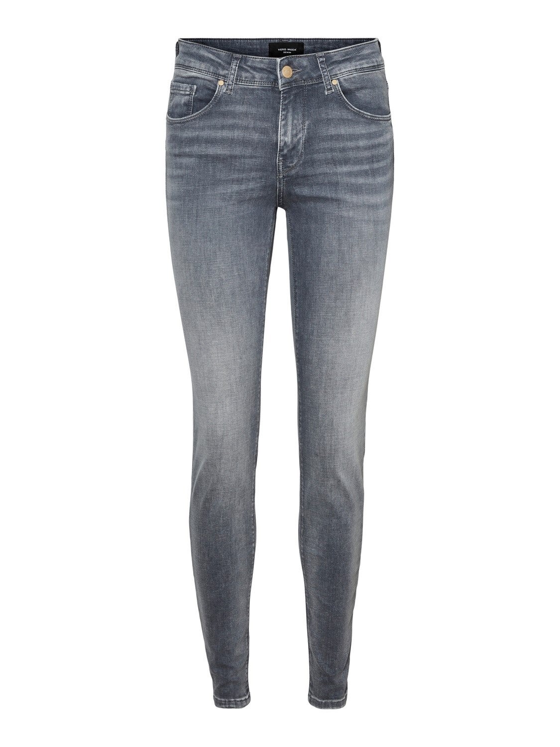 Mid waist skinny jeans van het merk Vero Moda. Grijze washing. Normale lengte. 92% Katoen, 6% Elastomultiester & 2% Elastane.