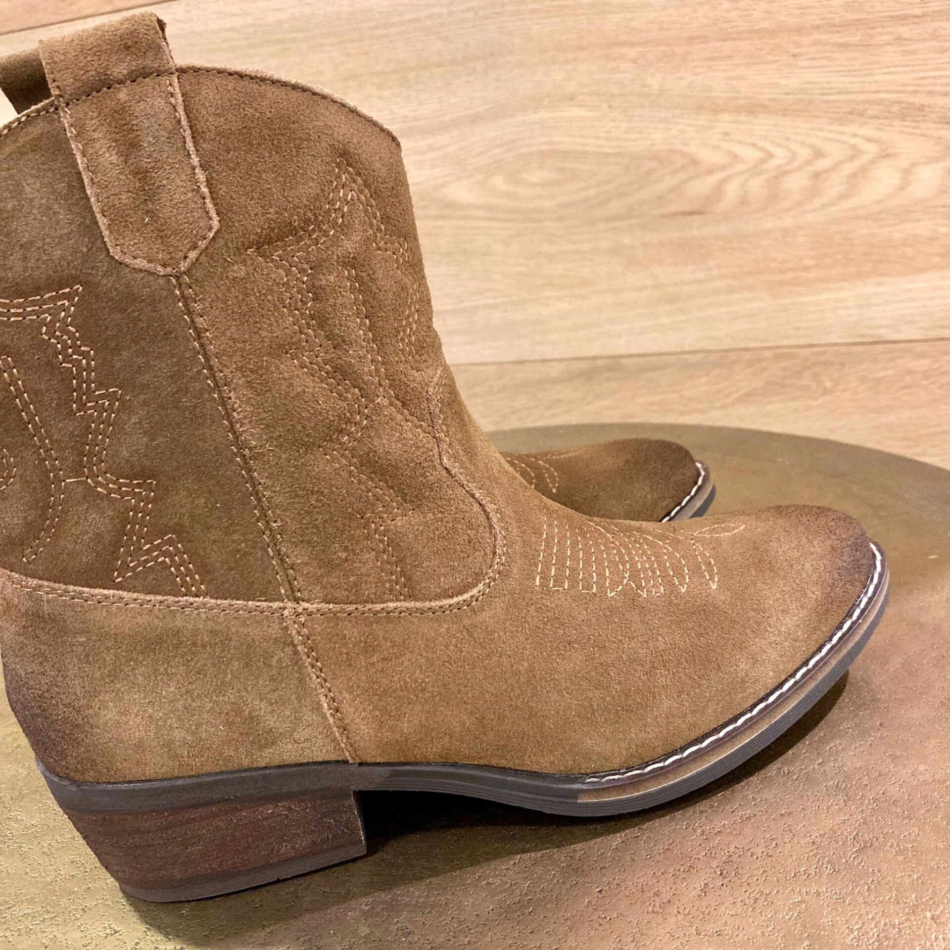 Suede cowboyboots van het merk Poelman. Met ritssluiting.