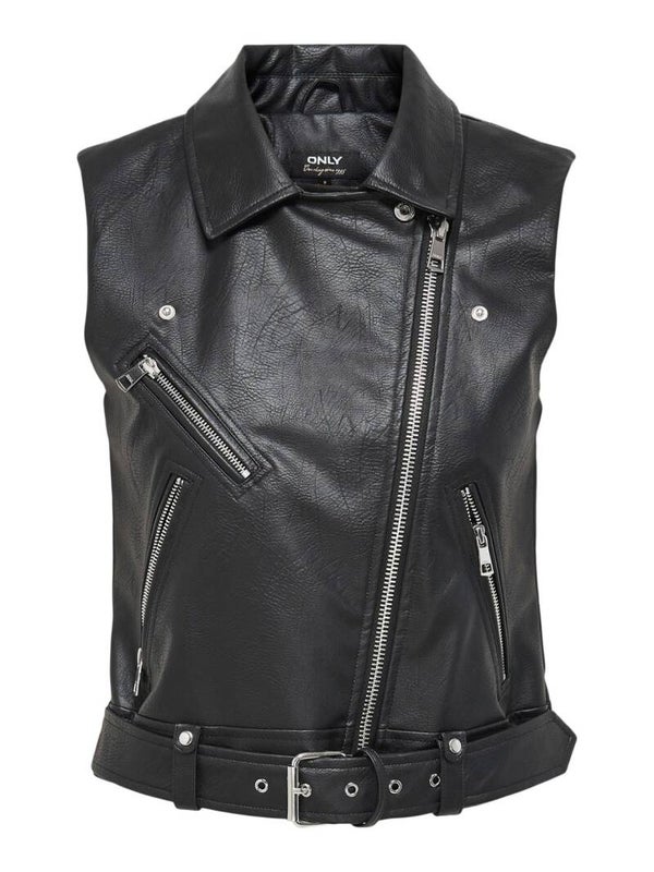ONLY Vera Faux Leather Waistcoat 10 Zwart